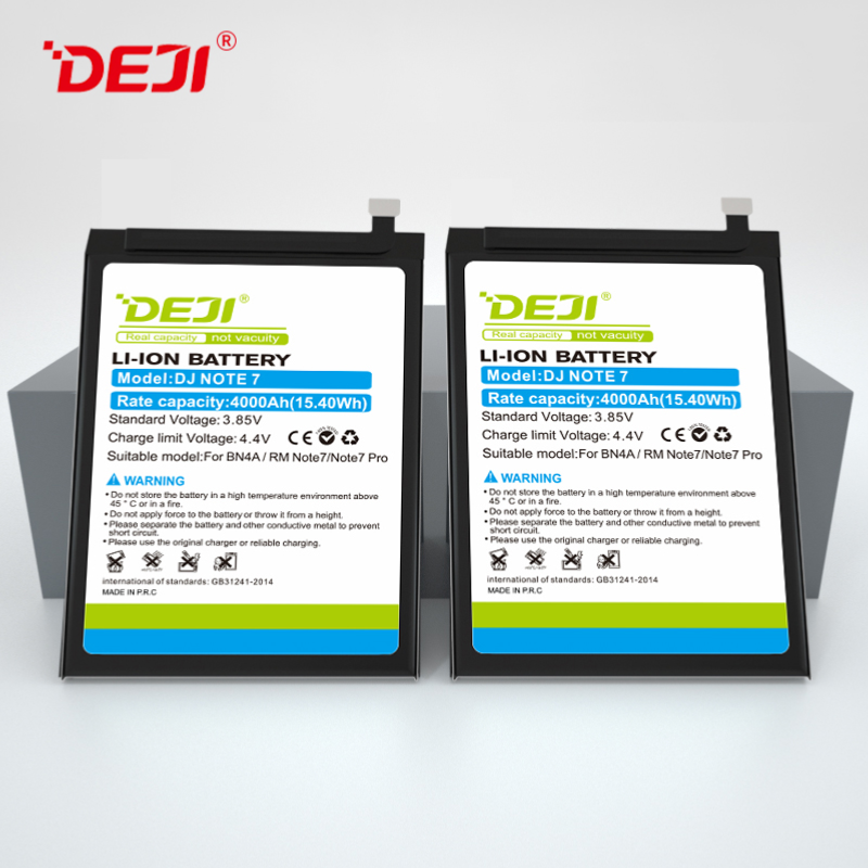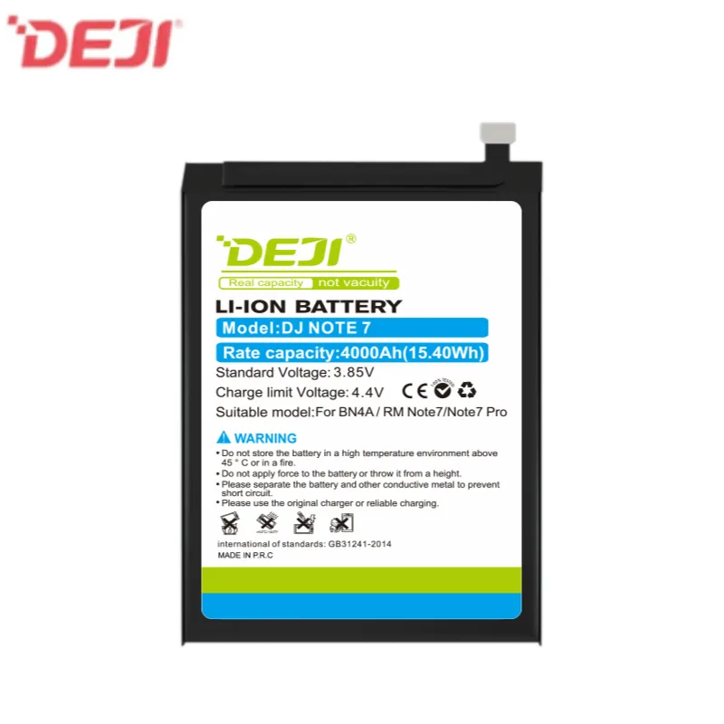 Thương hiệu: DEJI Mẫu: Pin điện thoại Redmi Note7/Redmi Note7pro Loại pin: Li-ion Dung lượng: 4000mAh Điện áp: 3.85V Điện áp giới hạn: 4.4V Chất liệu: Thân thiện với môi trường Thời gian sạc: 1-3 giờ Thời gian chờ: 5-8 ngày Chu kỳ sạc: Hơn 550 lần